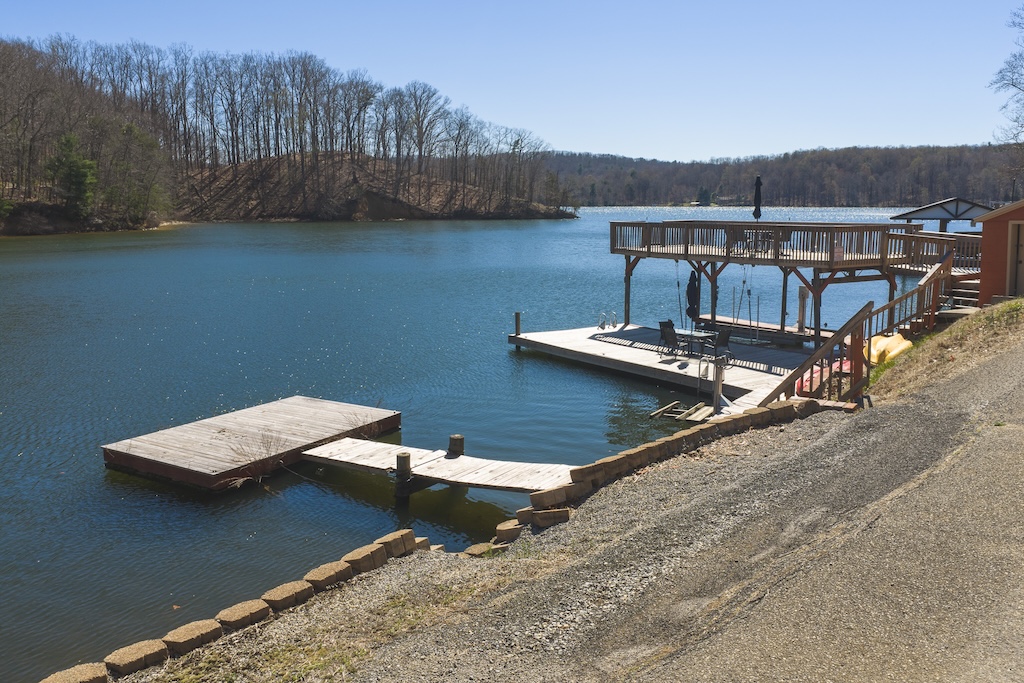 Check out this brick home on Claytor Lake offering 3 bedrooms, 2 baths, and two docks with direct water access. The interior features a mix of tile, laminate, and carpet. Living room features all-new furnishings with a fireplace and wall-mounted games. In the kitchen you will find a brand-new stove and refrigerator. With approximately 1,233 sq ft, there’s solid room for guests and gatherings. All furnishings and appliances convey with the property, making it move-in ready. The home is served by a shared well and septic.